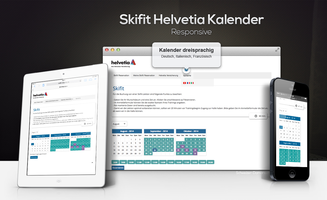 Beim Erstellen des Skifit-Kalenders für die Helvetia Versicherung wurde auf die Dreisprachigkeit gesetzt. Responsive Webdesign (für Web, iPhone und iPad optimiert).